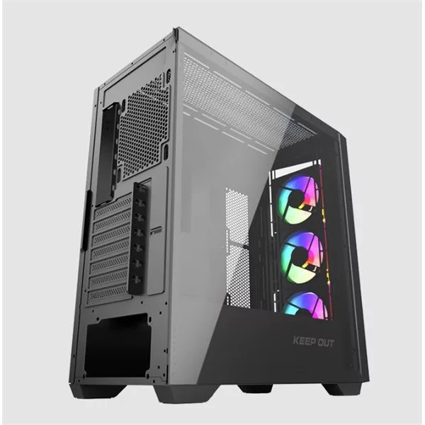 KEEP OUT Számítógépház - XC-500 GLASS (fekete, ablakos, 3x12cm ARGB venti, EATX, microATX, 2xUSB2.0, 1xUSB3.0)