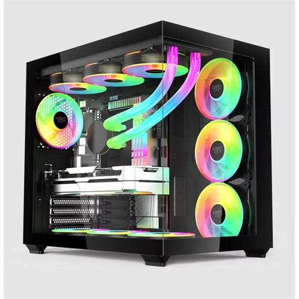 KEEP OUT Számítógépház - XC-800 PRO (fekete, ablakos, 4x12cm ARGB venti, microATX, 2xUSB2.0, 1xUSB3.0)