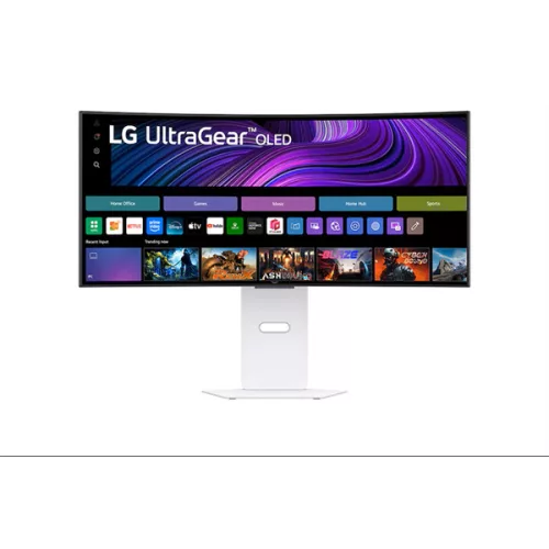 LG Monitor 34" - 34GX90SA-W (OLED; Ívelt, 21:9; 3440x1440; <1ms; 275cd; 240Hz, HDMIx2, BT, DP; USB; HDR; Áll.mag. Spkr)