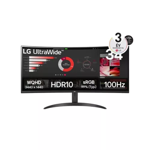 LG Monitor 34" - 34WR50QK-B (VA; Ívelt, 21:9; 3440x1440; 5ms; 300cd; 100Hz, HDMIx2, DP; HDR10; sRGB99%)