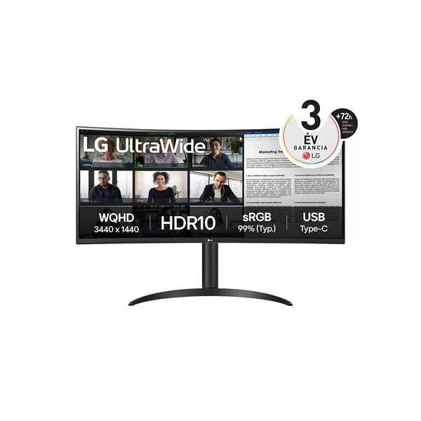 LG Monitor 34" - 34WR55QK-B (VA; Ívelt, 21:9; 3440x1440; 5ms; 300cd; 100Hz, HDMIx2, DP; USB; HDR10; sRGB99%; mag áll)