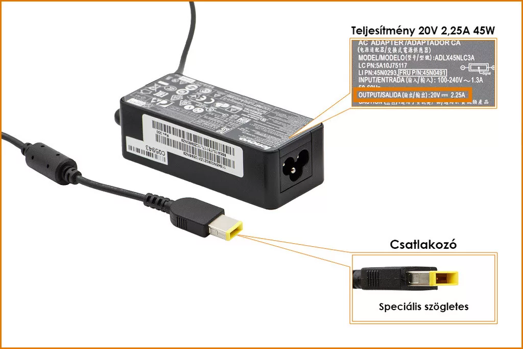 Lenovo 20V 2.25A 45W gyári új töltő, sárga téglalap alakú csatlakozóval, 00HM615