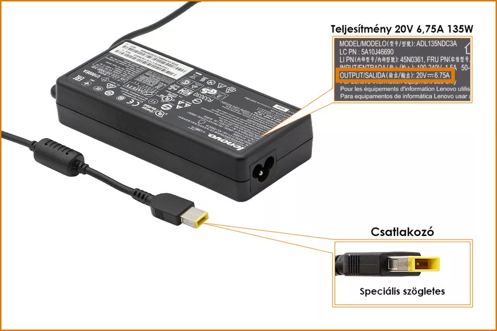 Lenovo 20V 6.75A 135W gyári új töltő, sárga téglalap alakú csatlakozóval, 45N0501