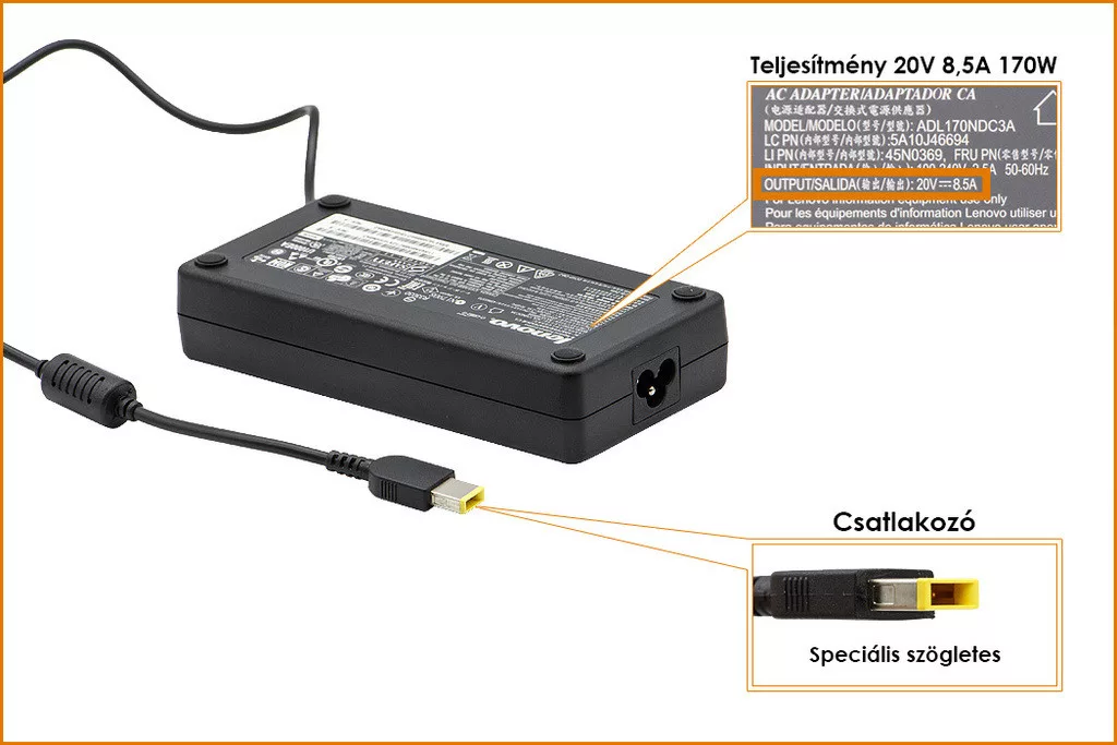 Lenovo 20V 8.5A 170W gyári új töltő, sárga téglalap alakú csatlakozóval (45N0558, 45N0514, 45N0370)
