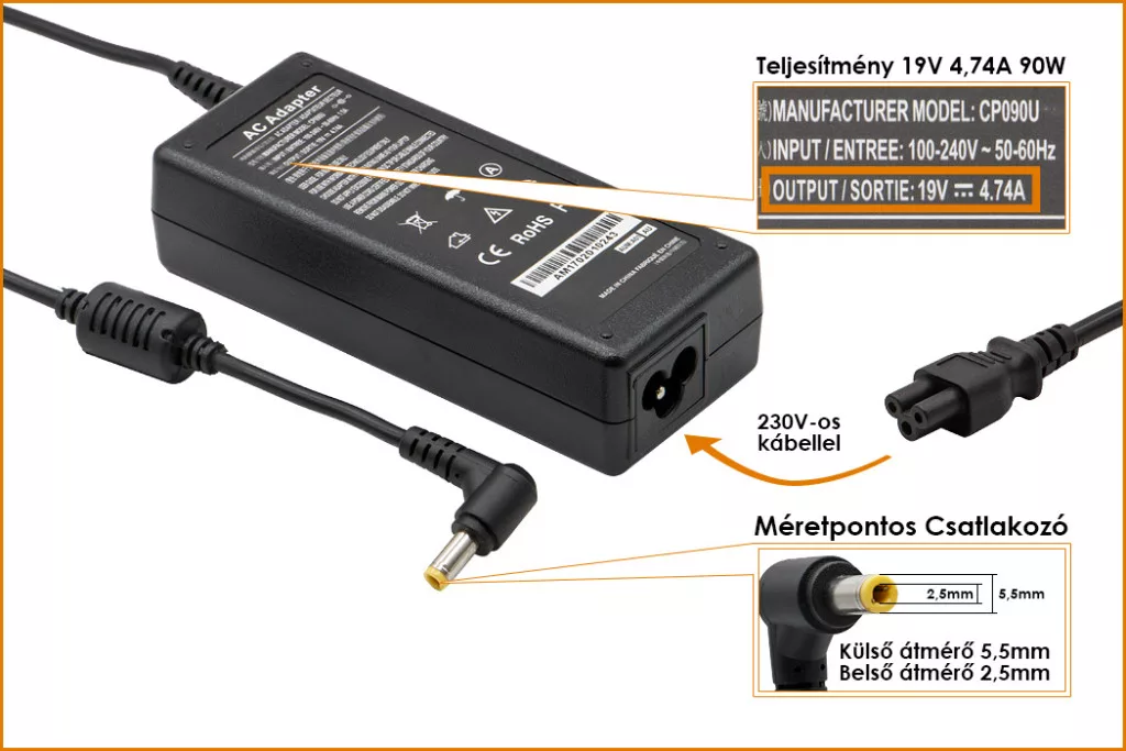 Gyárival megegyező minőségű helyettesítő laptop töltő.