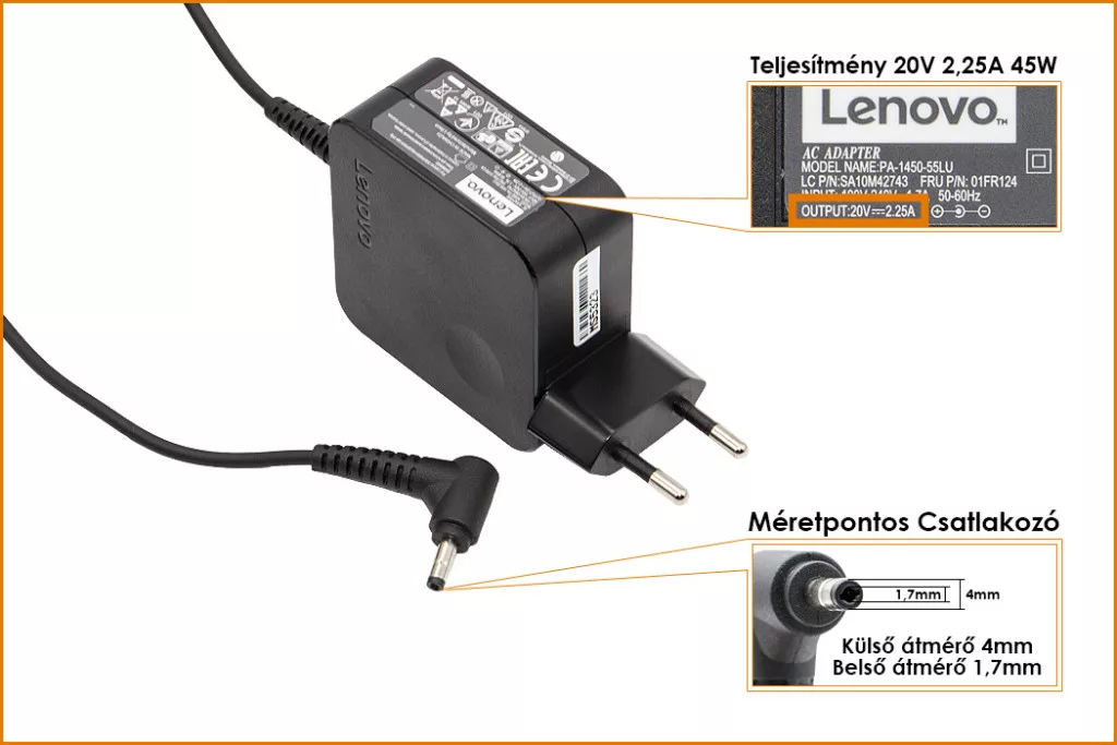 Eredeti, Gyári 45 Wattos laptop töltő Lenovo laptophoz.