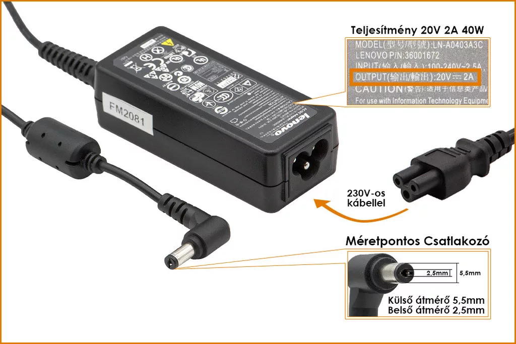 Kerek Csatlakozó méretei, amit a laptopba dugsz: kívül 5,5mm, belül 2,5mm!
