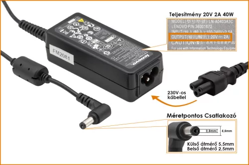 Lenovo IdeaPad 20V 2A  40W gyári új netbook töltő (41R4441,45K2200)