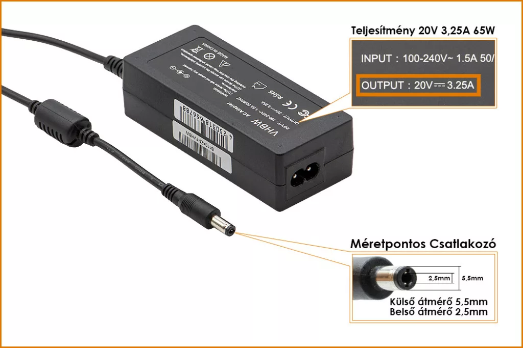 Kerek Csatlakozó méretei, amit a laptopba dugsz: kívül 5,5mm, belül 2,5mm!