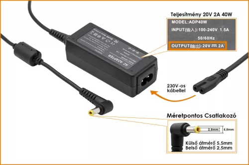 Lenovo IdeaPad, Fujitsu Amilo Mini 20V 2A 40W helyettesítő új netbook töltő (41R4441, 45K2200)