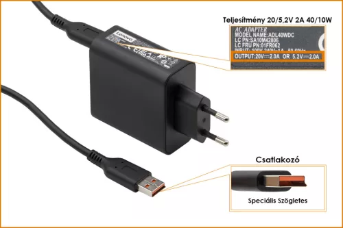 Lenovo Miix 2 11', Yoga 3 Pro 20V/5.2V 2A 40W gyári új töltő (36200567)