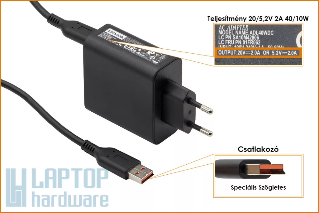 Lenovo Miix 2 11', Yoga 3 Pro 20V/5.2V 2A 40W használt gyári új töltő (36200567)