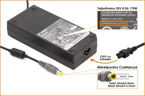 Lenovo ThinkPad W520, W530 20V 8.5A 170W gyári használt töltő (FRU 45N0112, 45N0354)
