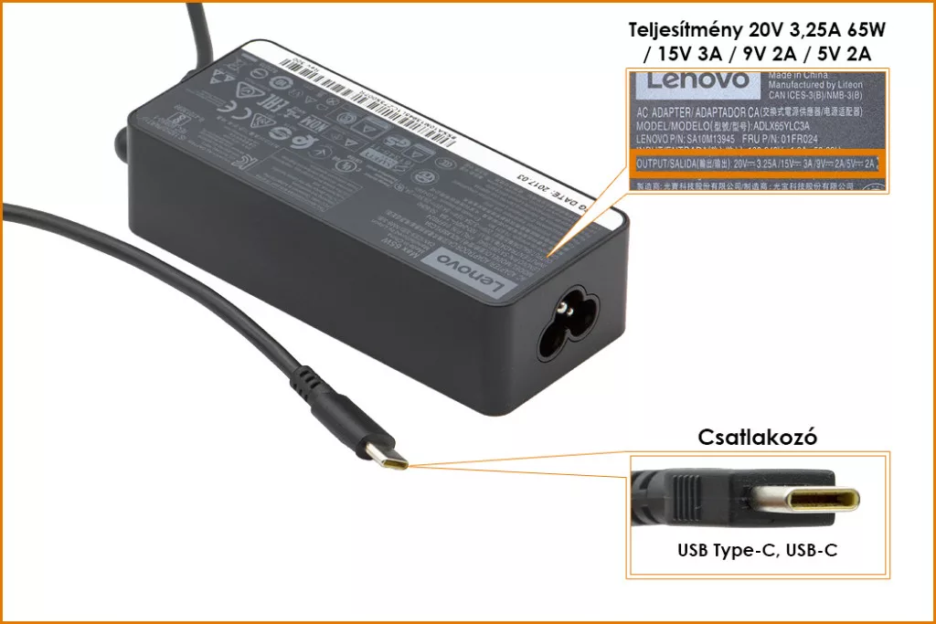 Lenovo Thinkpad, IdeaPad USB-C 65W 20V 3,25A gyári új laptop töltő