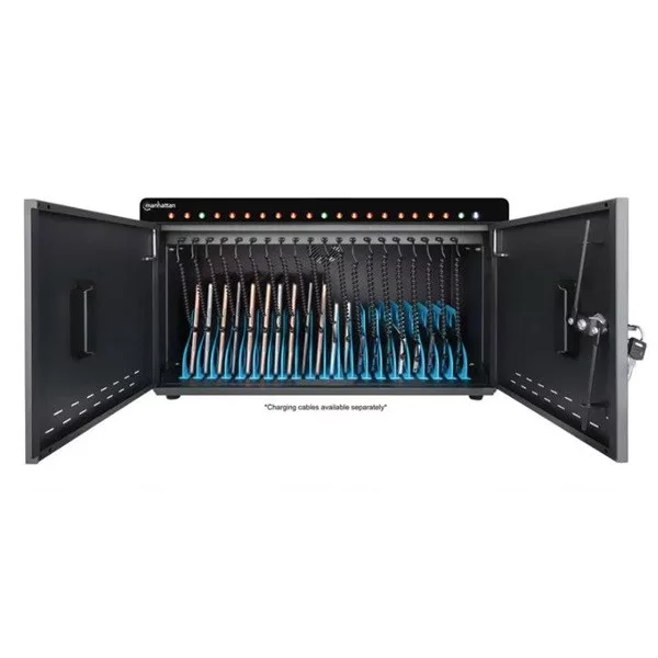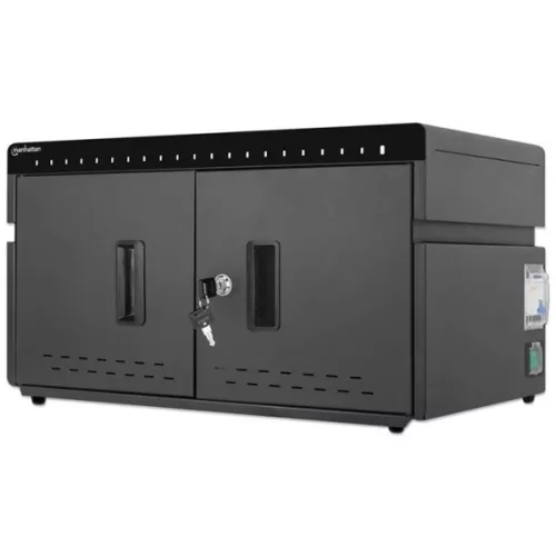 Manhattan Töltőszekrény - 20db USB-C, 360W (3A / 18 W), zárható fémajtó, beépített ventilátor, Fekete