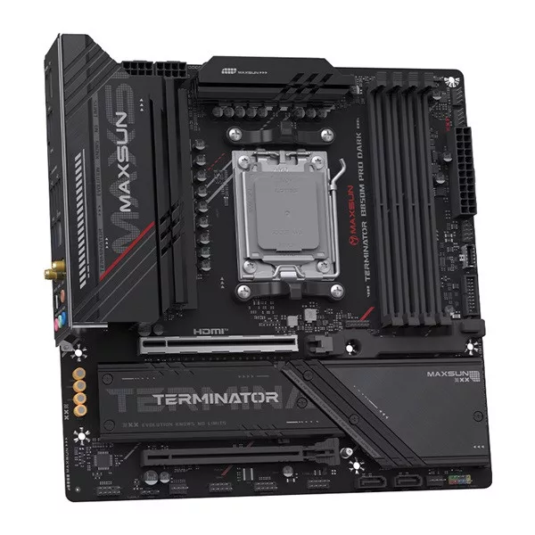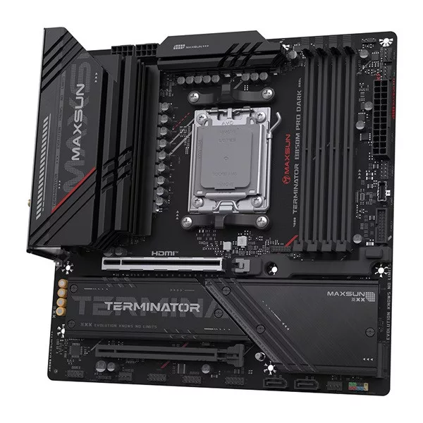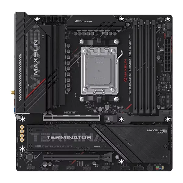 Maxsun Alaplap - AMD MS-TERMINATOR B850M PRO DARK WIFI AM5 (B850, mATX, 4xDDR5 8000MHz, 2xSATA3, 3xM.2, HDMI, DP)
