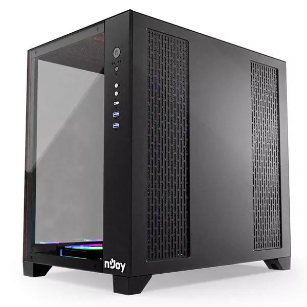 NJOY Számítógépház - AURA (fekete, ablakos, ATX, 7x12cm, 2xUSB3.0, 1x USB-C)