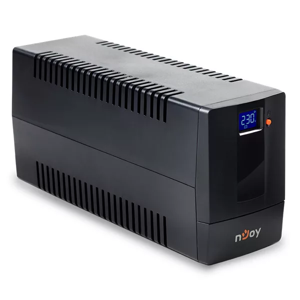 NJOY Szünetmentes 600VA - Horus Plus 600 (2 Schuko, line-interaktív, RJ11 védelem, USB, szoftver, LCD kijelző, fekete)