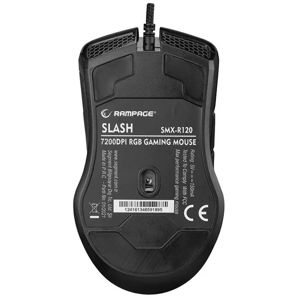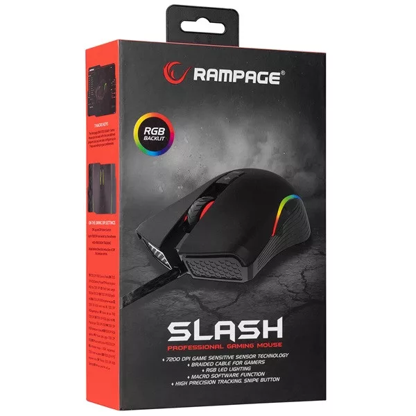 Rampage Egér Gamer - SMX-R120 SLASH (7200DPI, 7 gomb, makro, RGB LED, 1,8m harisnyázott kábel, fekete)