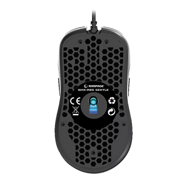 Rampage Egér Gamer - SMX-R85 GENTLE (6400DPI, 6 gomb, makro, RGB LED, harisnyázott kábel, fekete)