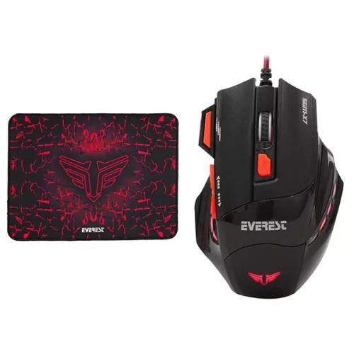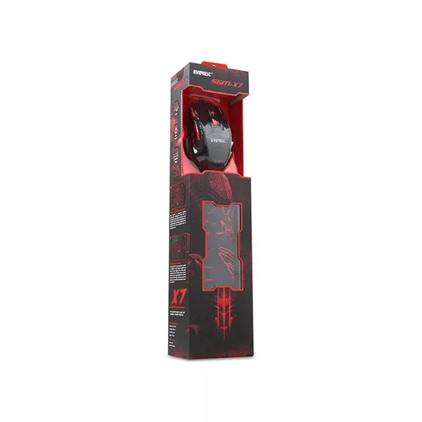 Rampage Egér Gamer és egér pad - SGM-X7 (1600DPI, 6 gomb, harisnyázott kábel, fekete)