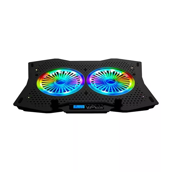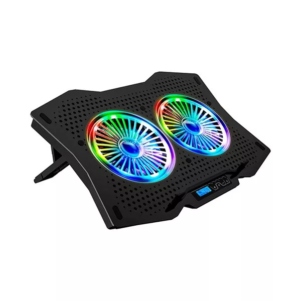 Rampage Notebook Hűtőpad 17"-ig - AD-RC9 TORNADO (20dB; 2*11,5cm venti, 1200rpm, RGB LED) Fekete