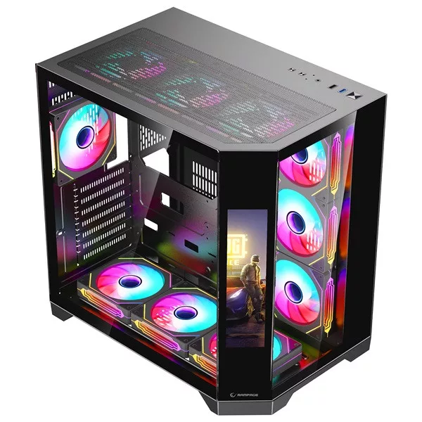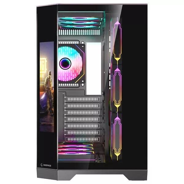 Rampage Számítógépház - NOVA (fekete; üveg; ATX; 9,17" TFT kijelző, 7x120mm RGB, 1xUSB3.0 + 1xUSB2.0)