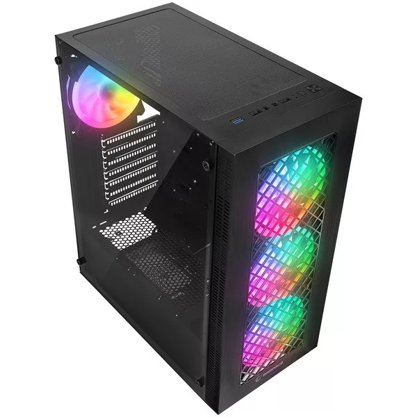 Rampage Számítógépház - PLAID V1 (fekete; üveg; ATX; alsó táp; 4x120mm RGB, 1xUSB3.0 + 2xUSB2.0)
