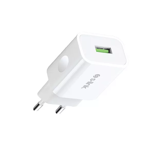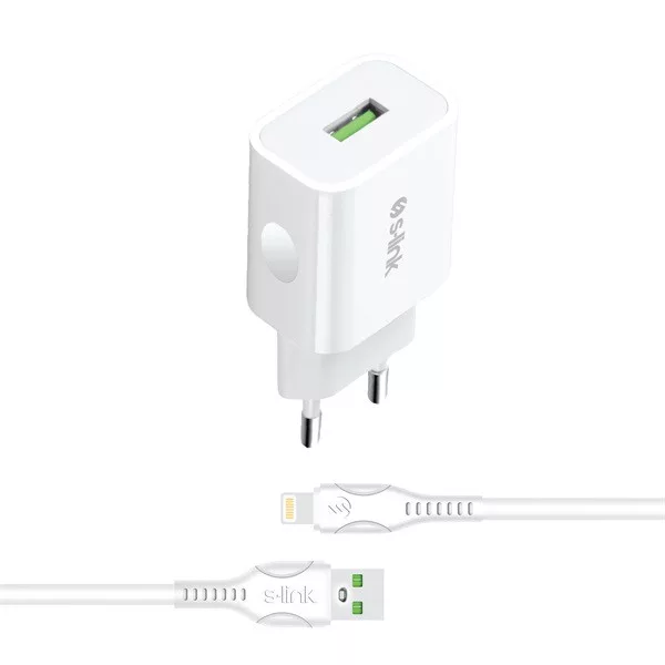 S-Link Hálózati töltő - AND-EC14B Lightning (1db USB, 5V/1A, 5W, Lightning-USB 100cm adat+töltőkábel, fehér)