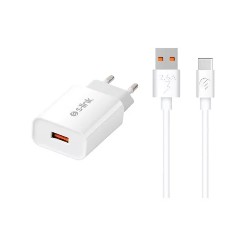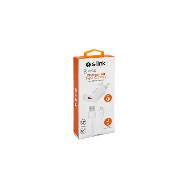 S-Link Hálózati töltő - SL-EC13T(1db USB, 5V/3A, 18W, Qiuck 3.0 Gyorstöltés, USB Type-C, 100cm adat+töltőkábel, fehér)