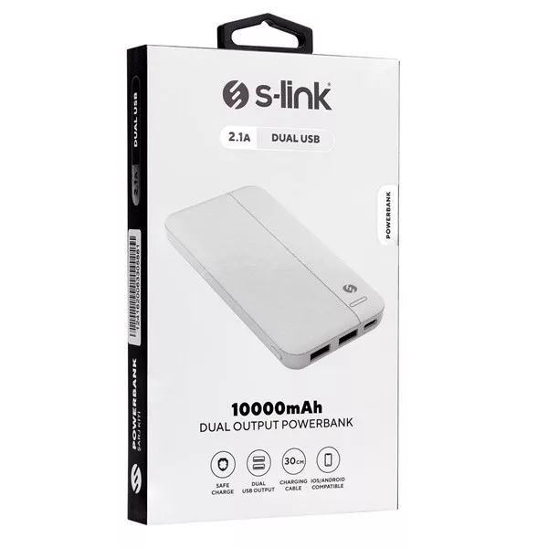 S-Link Powerbank - IP-G10N 10000mAh (2xUSB, Micro usb, Type-C, led, fehér)