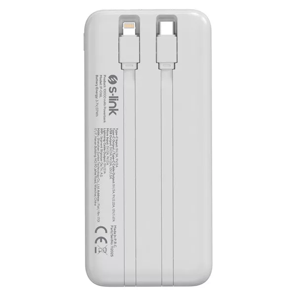 S-Link Powerbank - IP-G16L 10000mAh (3x Type-C, Lightning, 20W PD, led, fehér)