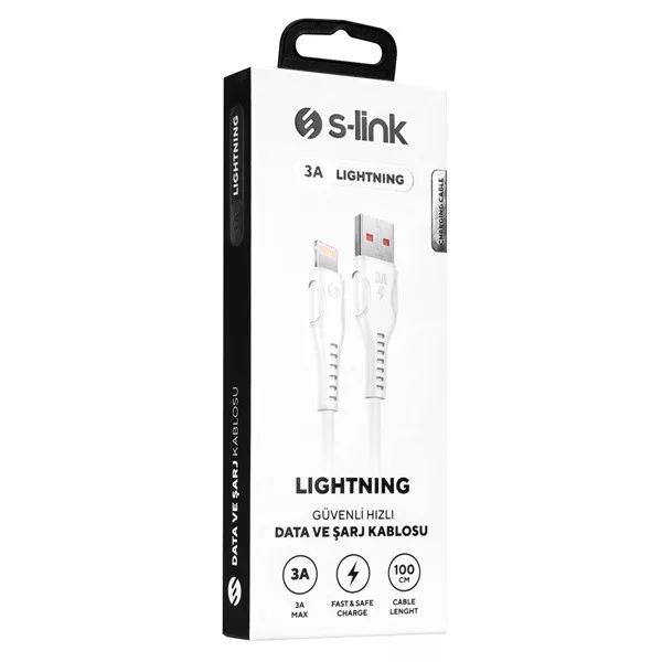 S-Link kábel - SL-X242 (3A, 12W, Gyorstöltés, Lightning, 100cm adat+töltőkábel, fehér)