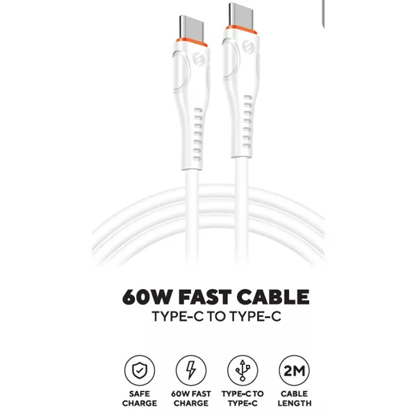 S-Link kábel - SW-C135 (3A, 60W, Gyorstöltés, Type-C to Type-C, adat+töltőkábel, 2m, fehér)