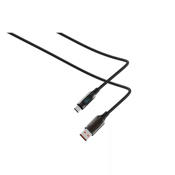 S-Link kábel - UC-066 (LED kijelző, 66W, Gyorstöltés, Type-C, 100cm adat+töltőkábel, fekete, fonott)