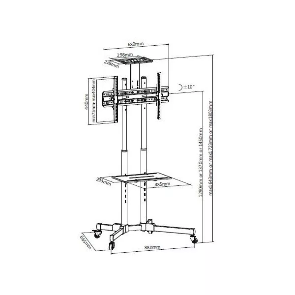 37-70"; 880x665x1803mm; max 50Kg; Állítható magasság; Dönthető: -10° - +10°