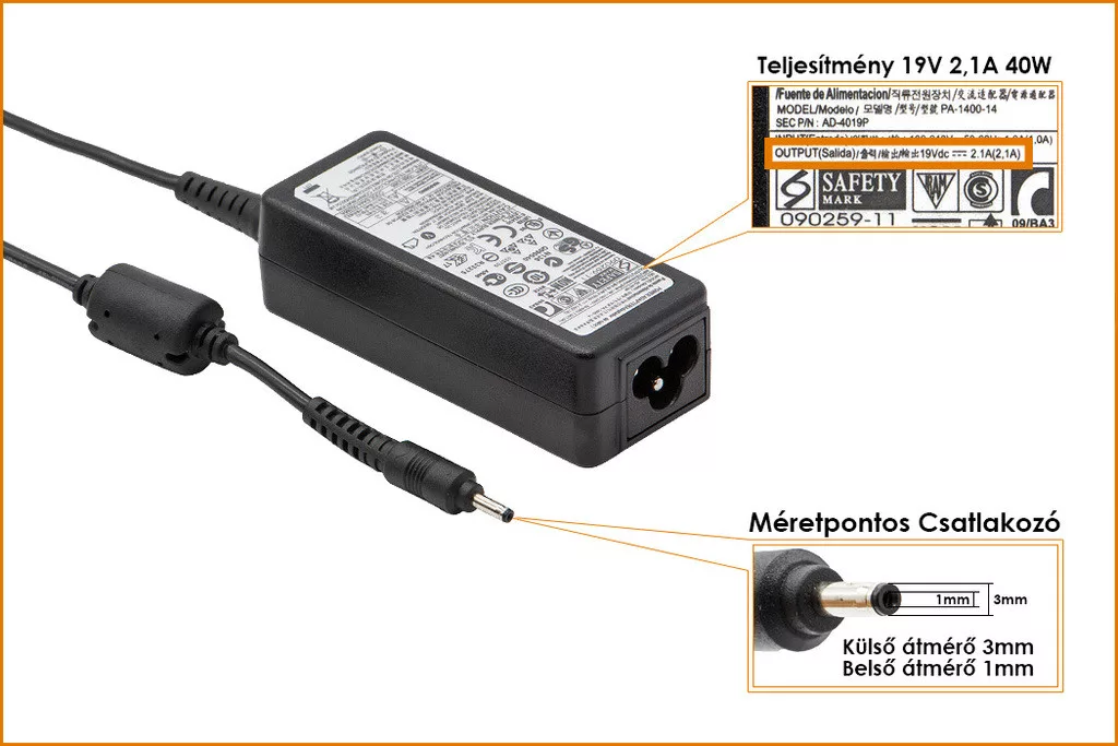 Samsung 19V 2.1A 40W UltraBook gyári új töltő (AD-4019A, AD-4019P)
