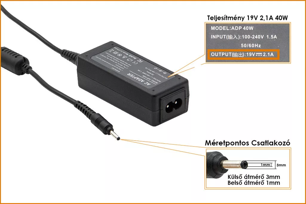 Kerek Csatlakozó méretei, amit a laptopba dugsz: kívül 3mm, belül 1mm!