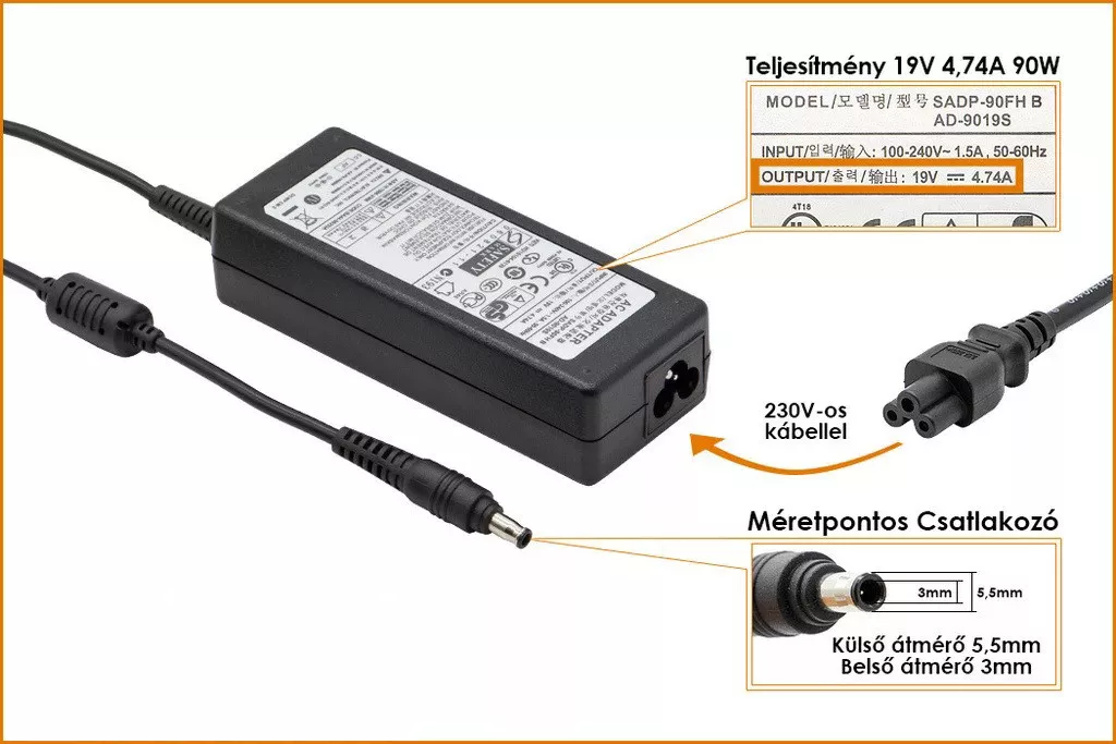 Samsung 19V 4.74A 90W (center pin) használt gyári töltő (SADP-90FH B, AD9019S)