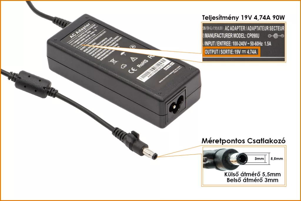 Gyárival megegyező minőségű helyettesítő laptop töltő.