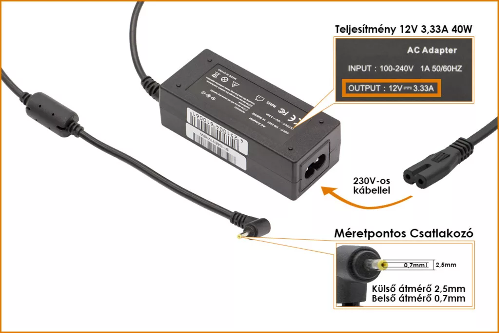 Gyárival megegyező minőségű helyettesítő laptop töltő.