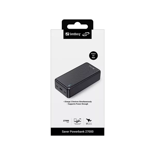 A Sandberg Saver Powerbank 27000 lenyűgöző kapacitást kínál kompakt kivitelben. A hatalmas 27000 mAh-val elegendő energiád van több teljes töltéshez az eszközeid számára—tökéletes utazáshoz, fesztiválokhoz és más helyzetekhez, ahol messze van a konnektor. A kapacitása alig 100 Wh alatt van, ami éppen a határa annak, amit repülőre vihetsz—így a lehető legnagyobb teljesítményt biztosítja utazáshoz. Az USB-A és USB-C portok gyors töltéssel biztosítják a hatékony és megbízható töltést mindentől kezdve az okostelefonoktól a tabletekig, miközben a diszkrét LED jelzőfény tájékoztat az akkumulátor szintjéről.