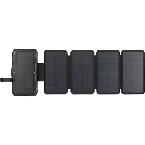 Solar 5-Panel Powerbank 10000 egy nagy teljesítményű 10000 mAh energia-tároló és összehajtható napelem, amelynek segítségével gyorsan és hatékonyan fel tudja eszközeit tölteni napos idő esetén. Amikor például kirándul, erősítse az eszközt a hátizsákjára. Megnyugodhat, hogy mobil eszközei mindig fel lesznek töltve, függetlenül attól, hogy milyen messzire van a legközelebbi konnektortól. A készülés vízálló és rázkódásnak ellenálló anyagokból készült.