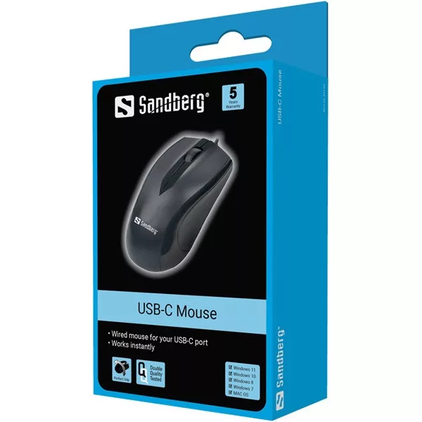 A Sandberg USB-C Mouse egér nagyon jól megfelel az otthoni és irodai használatra. Az egér kábele USB-C csatlakozóval rendelkezik, így nincs szükség adapterre, ha USB-C porttal rendelkező eszközhöz csatlakoztatja. Azonnal, szoftver telepítése nélkül működik.