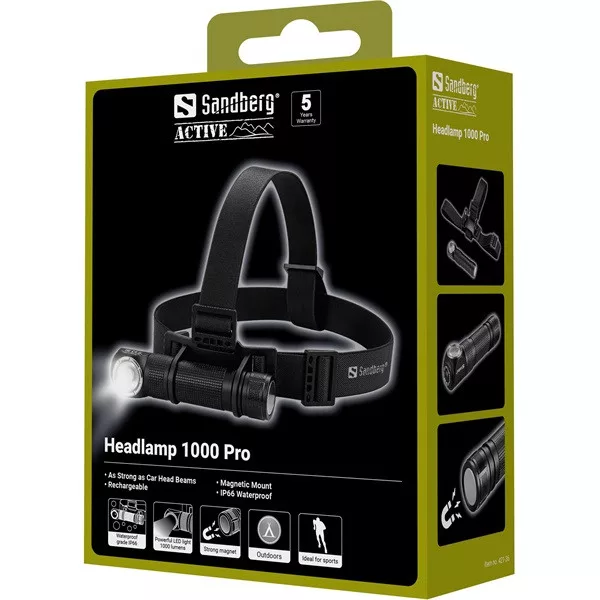A Sandberg Headlamp 1000 Pro maximális fényerőt és tartósságot biztosít az igényes felhasználók számára. Az erőteljes 1000 lumenes LED olyan fényt nyújt, amely hasonló az autó fényszóróihoz, így tiszta láthatóságot biztosít még sötét és kihívást jelentő körülmények között is. A 6 állítható fényerő módnak köszönhetően tökéletes mind kültéri kalandokhoz, mind professzionális használatra. Az extra fejpánt biztos illeszkedést nyújt még mozgás közben is, míg az IP66-os minősítés teljesen por- és vízállóvá teszi a fejlámpát. Az újratölthető akkumulátor mindig készen áll az akcióra, a mágneses talp pedig lehetővé teszi, hogy könnyedén fém felületekre rögzítsd. Töltsd USB-n keresztül, és légy felkészült, bármilyen időjárás vagy terep is vár rád.