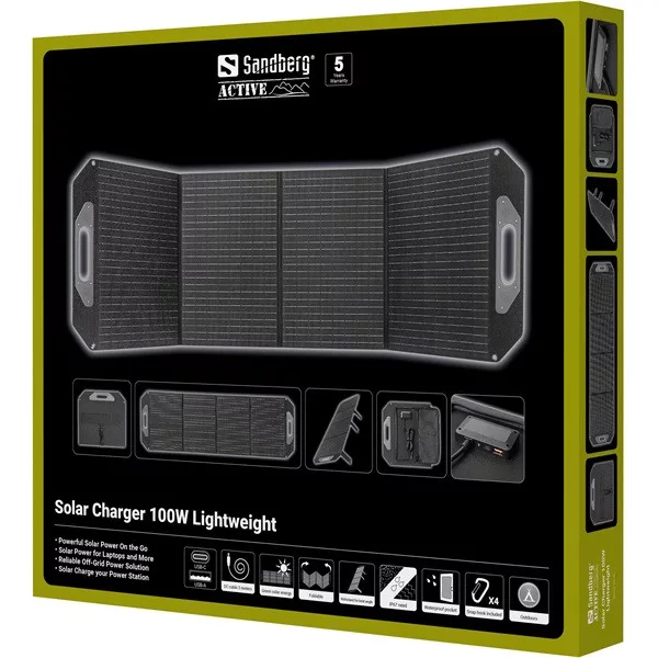 A Sandberg Solar Charger 100W Lightweight egy nagy teljesítményű napelemes töltő azoknak a felhasználóknak, akik komoly energiára vágynak, amikor távol vannak az elektromos aljzatoktól. Az összecsukható kialakítás ötvözi a nagy teljesítményt a hordozhatósággal, így a panel alkalmas kültéri, kempingezéshez és hálózaton kívüli használatra. A monokristályos PERC napelemek akár 100W-ot is biztosítanak, lehetővé téve, hogy laptopokat, áramforrásokat, power bankokat és más igényes eszközöket közvetlenül a napelemről tölts USB-C, USB-A vagy DC kimeneten keresztül. A magas hatékonyság biztosítja a stabil energiaellátást változó körülmények között. Tartós ETFE laminálással és robusztus szerkezettel építve, a Sandberg Solar Charger 100W Lightweight az ideális választás, ha maximális rugalmasságra és nagy teljesítményre van szükséged a napenergiából.