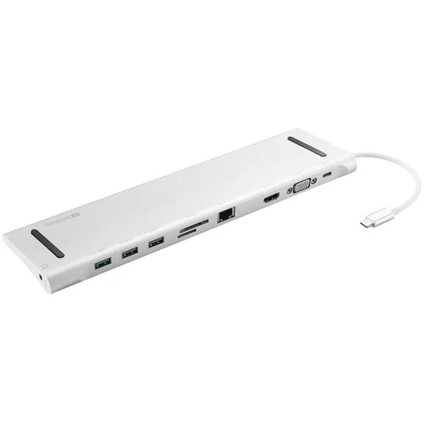 Sandberg Notebook Dokkoló - USB-C 10-in-1 Docking Station (USB-C, HDMI/VGA, 3x USB3.0, 1x RJ-45, Audio, kártyaolvasó)