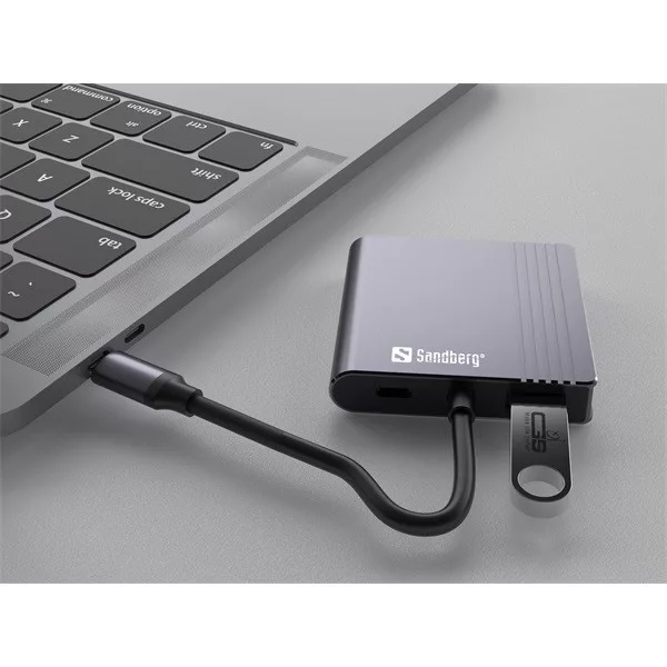Sandberg Notebook Dokkoló - USB-C Dock 2xHDMI+USB+PD (Bemenet: USB-C; Kimenet: 2xHDMI+USB-A3.0+USB-C)