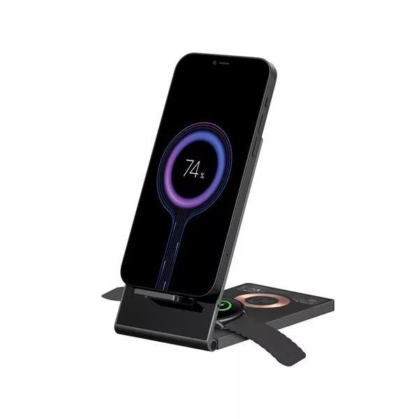 A Sandberg 3 az 1-ben vezeték nélküli töltőállvány lehetővé teszi az okostelefon, az Airpod eszköz és az okosóra vezeték nélküli, egyidejű töltését. A töltőállomás mágneses, ezért MagSafe rendszerű iPhone készülékhez is csatlakoztatható. Más Qi-kompatibilis telefonok is tölthetők a töltőpadon. Egyszerűen helyezze őket a kis kihajtható tartóra. Az egész állvány összecsukható és könnyen hordozható.