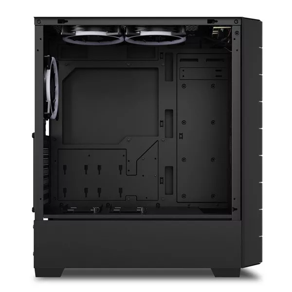 Lenyűgöző megjelenés nagy teljesítménnyel: Az RGB Hex nemcsak hűvös megjelenést kölcsönöz a légáteresztő előlap 3D-s hatszögletű kialakításának, hanem hűvös is marad – függetlenül attól, hogy milyen forró a játék. Ezt a hat előre telepített ventilátor biztosítja, amelyek ráadásul teljes mértékben RGB címezhetők. Ezenkívül a midi-ATX házban bőven van hely a hardver számára, valamint egy modern USB Type-C 3.2 Gen 2 port és egy edzett üveg oldalpanel.